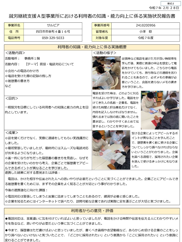 当施設は四日市市を拠点とし、就労支援事業所A型という障害福祉サービスに関わるお仕事を行っております。
